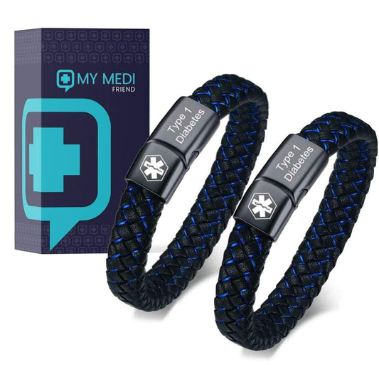 Men Black Diabetes Bracelet Type 1 & 2 Diabetes