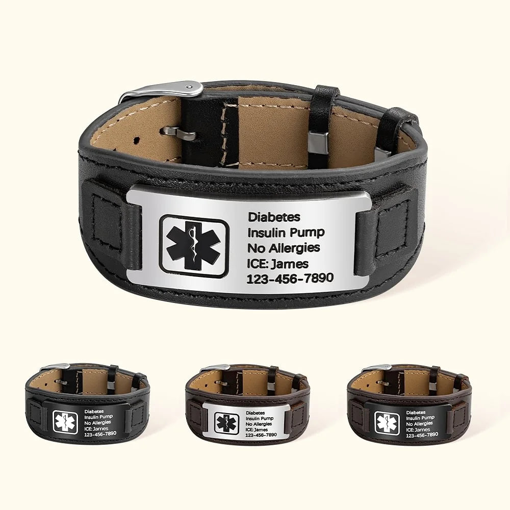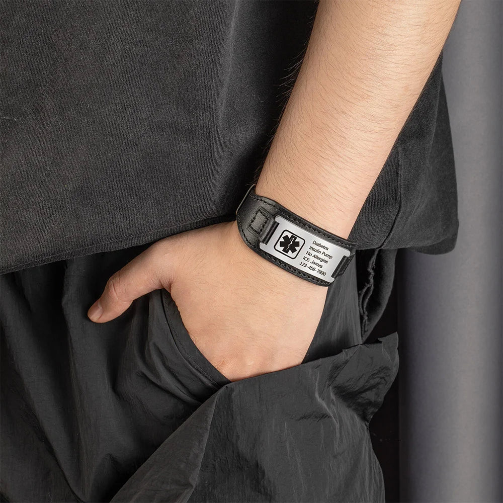 Men Black Diabetes Bracelet Custom Engraving
