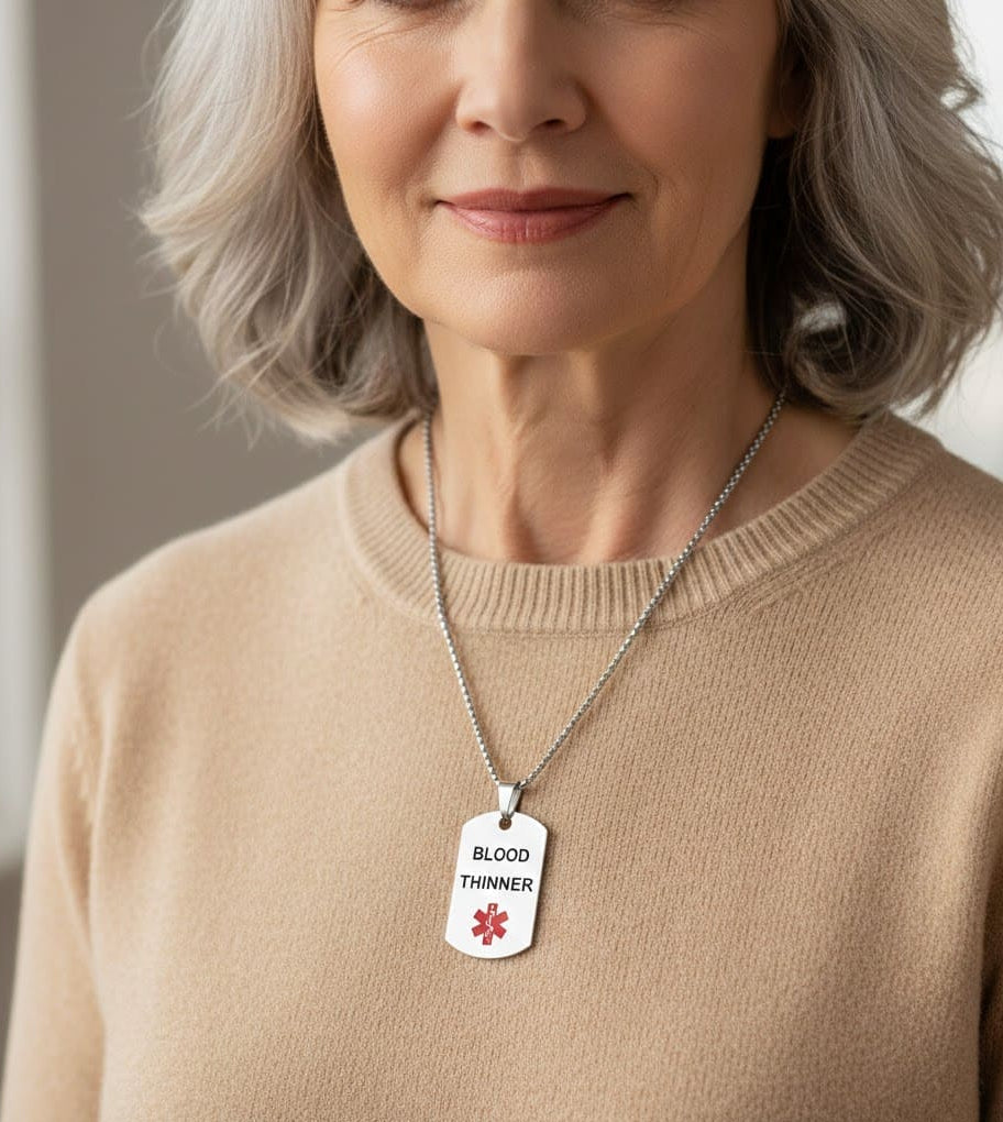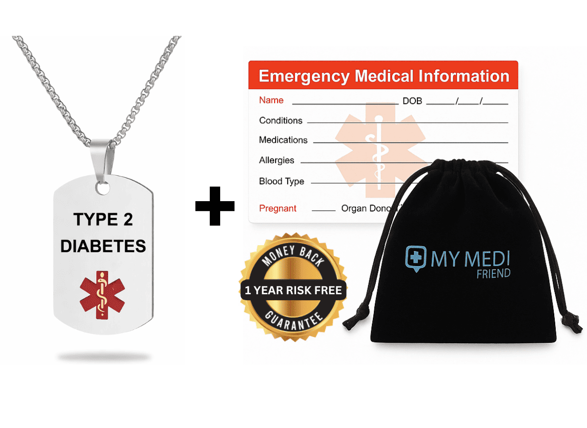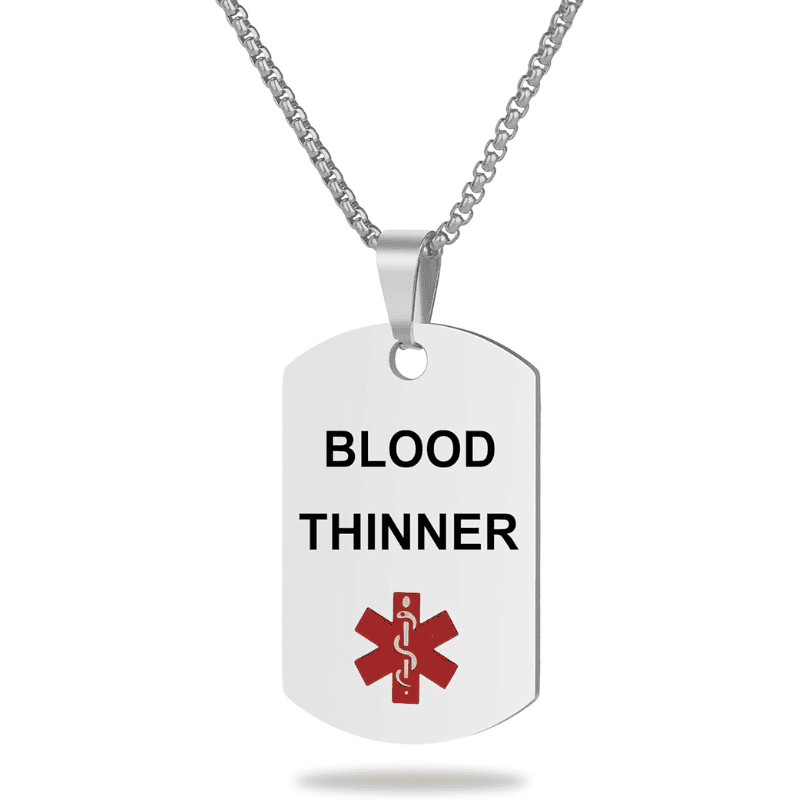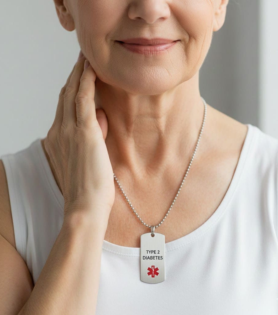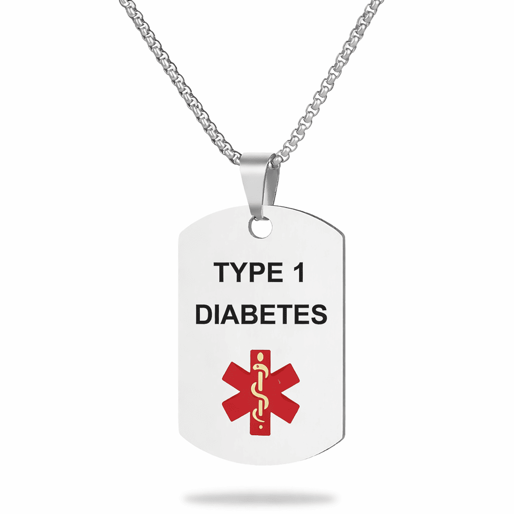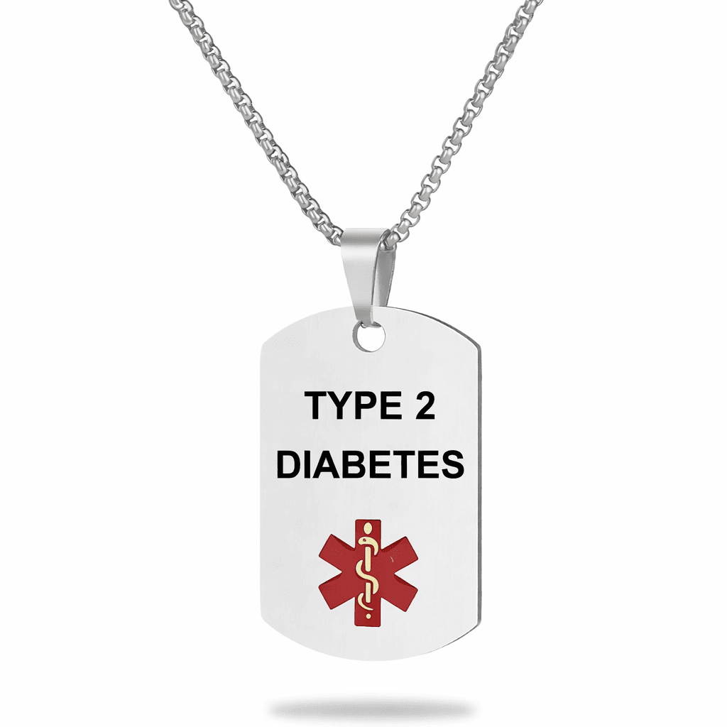 In case of an accident or any other unexpected emergency, the information on the necklace alerts medical personnel to your condition (Type 1 Diabetes, Type 2 Diabetes, or Blood Thinner) so they can respond quickly and avoid the risk of the wrong treatment being given.