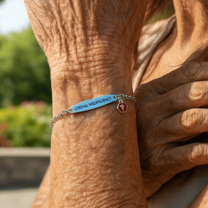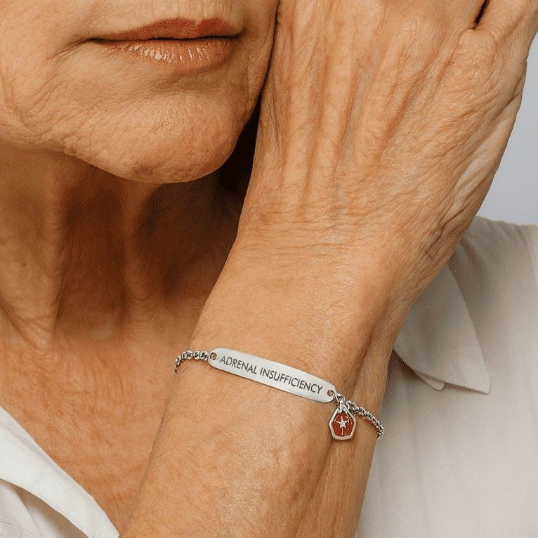 In a fall, crash, or any unexpected emergency, seconds matter. If you can’t speak, this bracelet tells first responders you have adrenal insufficiency, so they can recognize a crisis and treat you urgently.