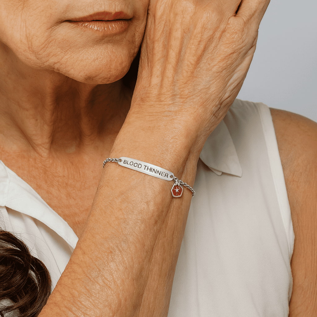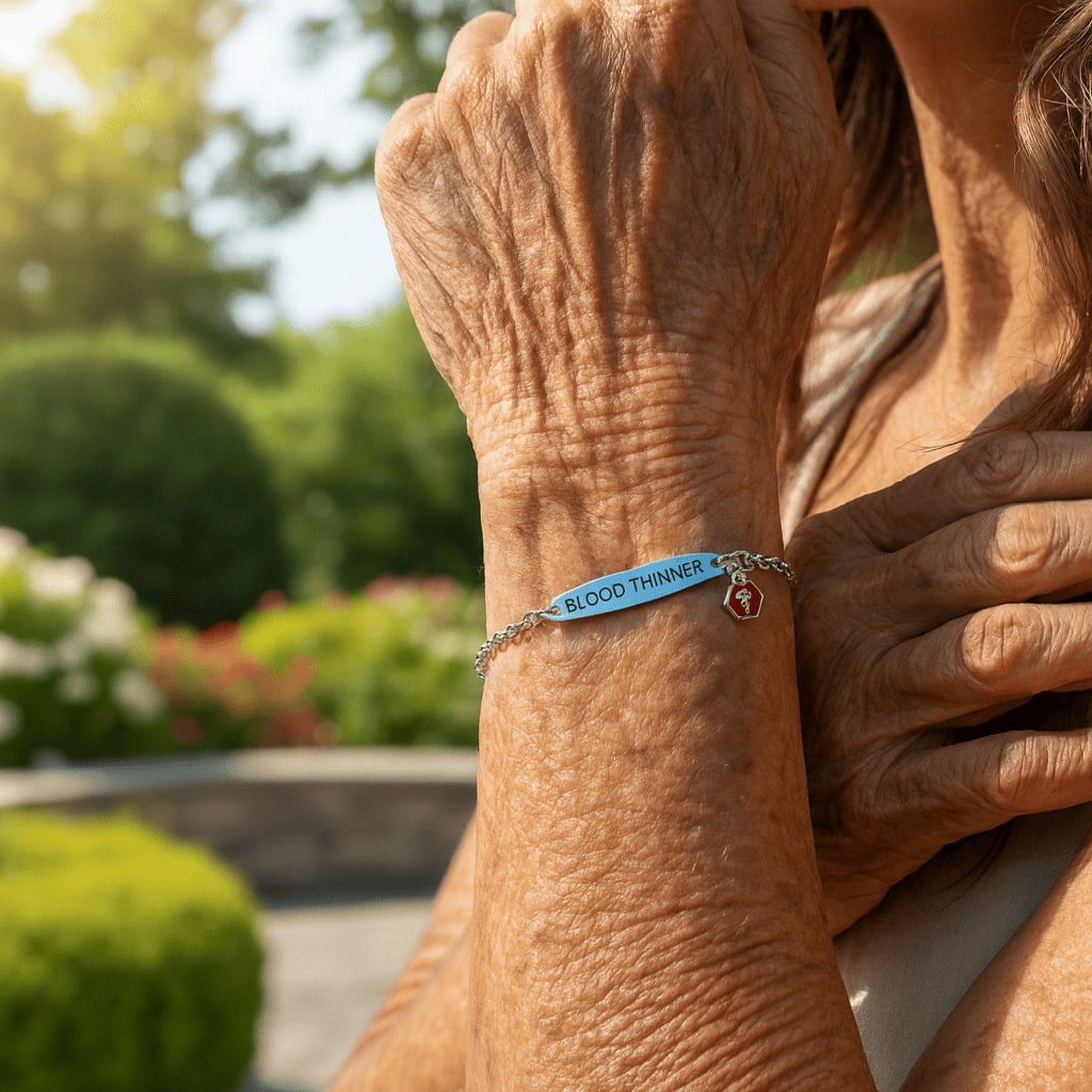 In a fall, crash, or any unexpected emergency, seconds matter. This bracelet tells first responders you’re on a blood thinner, so they can act fast and safely.