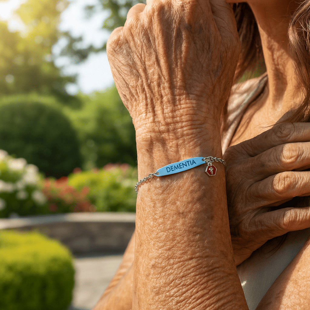 - Fast identification matters. If someone is confused, lost, or distressed, responders can immediately see “Dementia” and understand the situation.