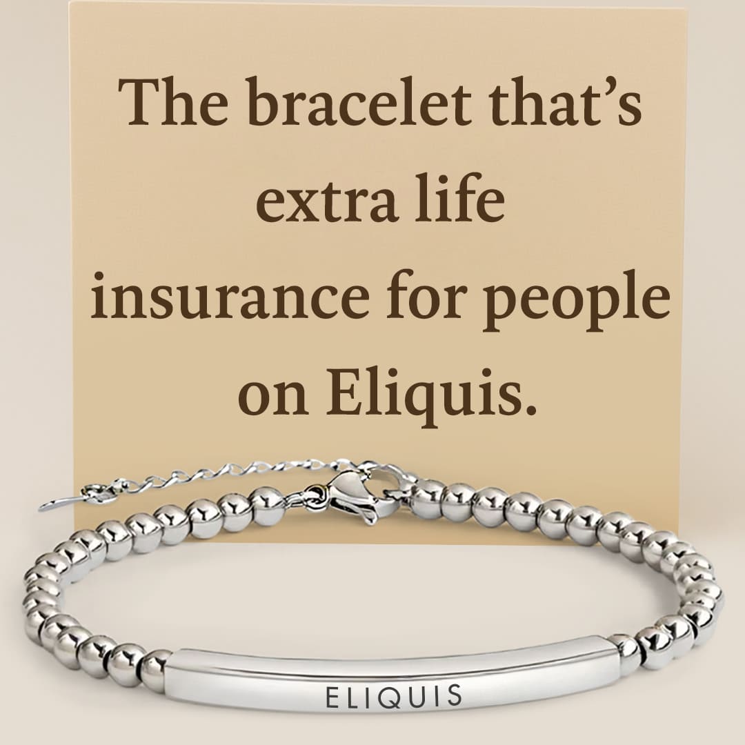 In a fall, crash, or any unexpected emergency, seconds matter. If you can’t speak, this bracelet tells first responders you take Eliquis, so they can factor in bleeding risk and treat you safely.